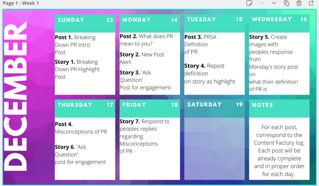 This set back allowed me to review my current work such as the target audience report, competitor analysis, style guide, and more. Now you all have seen snippets of everything so far but this will be on a grand scale. I will be putting my focus on all of this throughout the week and I am so excited to share it with you all. I believe the success of this launch is truly capable of happening due to the research and time put into these reports and I am looking forward to adding more sections to this report once Breaking Down PR gains a following and genuine engagement. Can’t wait to share more updates with you next week! Be sure to also check out this weeks production journal here.